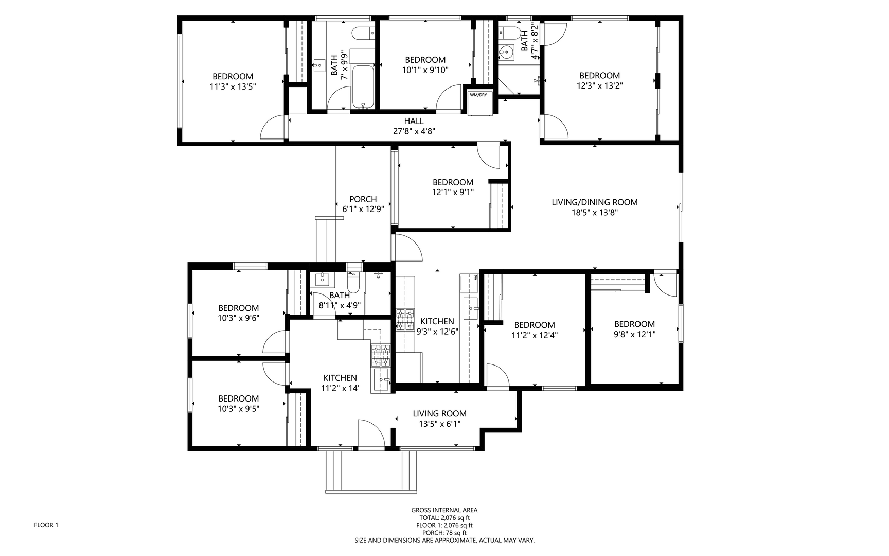 This house is two attached units being rented together. Main house is 5BD/2BA. Second unit is 3BD/1BA. Perfect for a large group. Usually rents to 8-9 people.